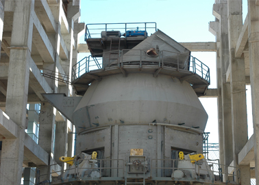 電動機通過減速機帶動磨盤轉動,物料經喂料器從進料口落在磨盤中央,同時熱風從進風口進入磨內。隨著磨盤轉動,物料在離心力作用下,向磨盤邊緣移動,經過磨盤上環形槽時受到磨輥碾壓而粉碎,粉碎后物料在磨盤邊緣被風環高速氣流帶起,大顆粒直接落到磨盤上重新粉磨,氣流中物料經過上部選粉機時,在旋轉轉子作用下,粗粉從錐斗落到磨盤重新粉磨,合格細粉隨氣流一起出磨,通過收塵裝置收集,即為產品,含有水分物料在與熱氣流接觸過程中被烘干,通過調節熱風溫度,能滿足不同濕度物料要求。通過調整選粉機,可達到不同產品所需粗細度。